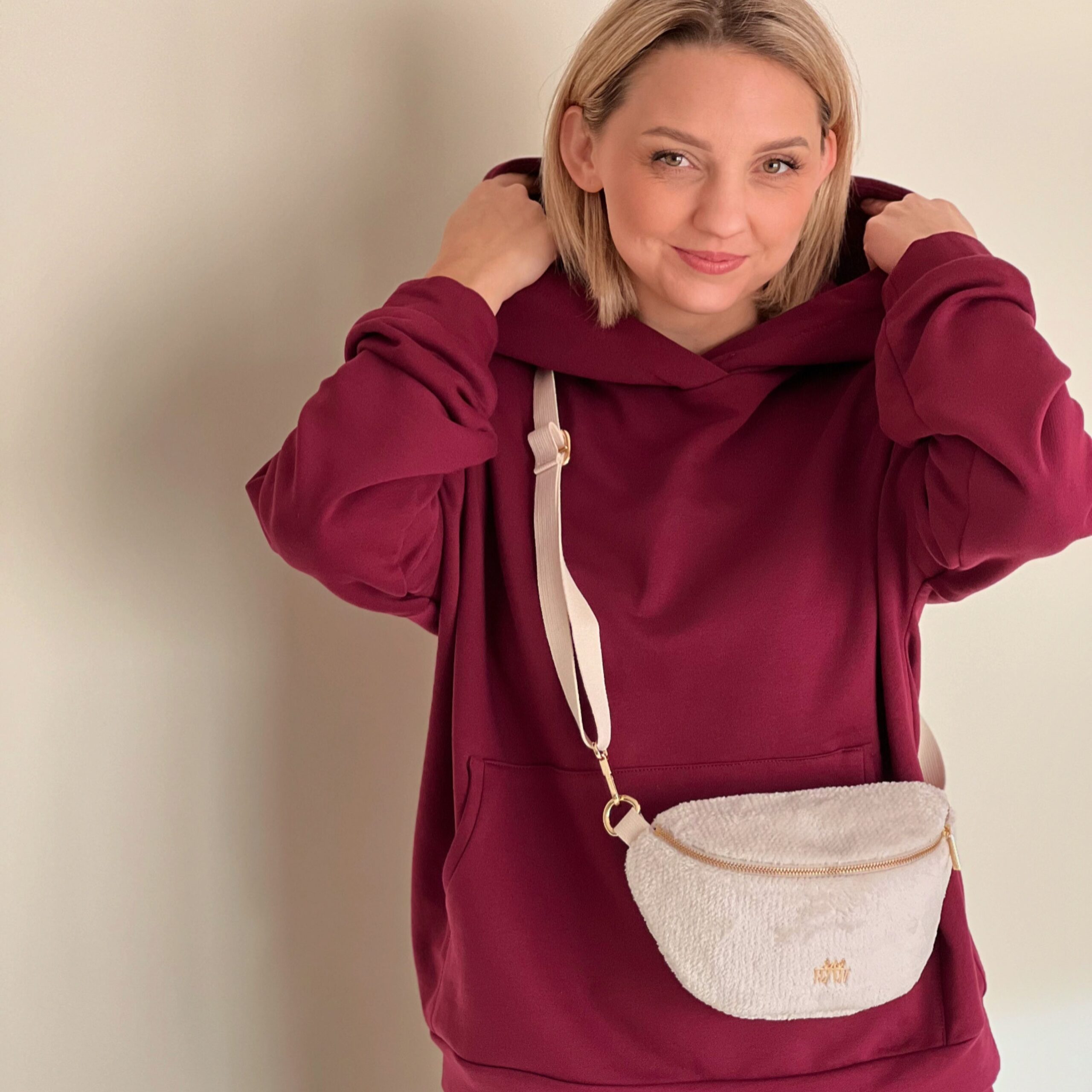 Mit einem verstellbaren Baumwollgurt passt sie sich deinem Stil perfekt an – ob auf der Hüfte, über der Schulter oder als Crossbody. Innen bietet sie ein praktisches Reißverschlussfach für deine wichtigsten Utensilien sowie einen Schlüsselring, der den Alltag erleichtert.